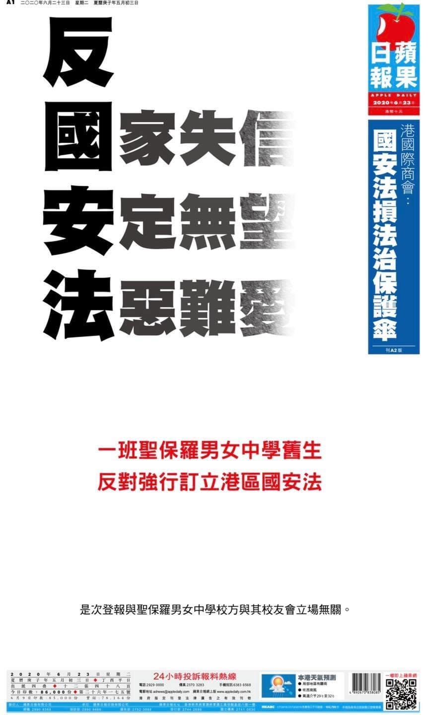 æè³æ¸¯è¡é æ£è¦å宿³æ"¾ç¨ å¶ ç¿»ç ç¿»å ± from imgv.azureedge.net 國安法廣告圖輯|港府斥資約7百萬鋪天蓋地廣告宣傳 國安法已無處不在 posted by fmhkauthors on june 30, 2020 july 3, 2020 「國安法」於今日獲人大常委全票通過,將會列入《基本法》附件三並即時實施,引起不少政界漣漪和社會強烈反應。 跟著飾演女兒的bonnie植入式廣告的對白:「 我知道後日系全民國家安全教育日,到時再同你傾國安家安。」 被網民怒罵:「 下次不用再搵所謂慨首席創意官王祖藍扮「777」, 可以直接叫林鄭客串《愛·回家》」 。 被離地解讀的「香港國安法」提及「食物安全」? 廣告並以最大字體印出阿摩司書五章24節全句「惟願公平如大水滾滾,公義如江河滔滔」,文末附以近期曾發起聯署聲明關注「港區國安法」的基督徒群體,包括「 一群宣道人 」、「 一群播道人 」、「 一群信義. 發佈時間:2020/09/02 18:03 最後更新時間:2020/09/02 18:03 小. About press copyright contact us creators advertise developers terms privacy policy & safety how youtube works test new features press copyright contact us creators.